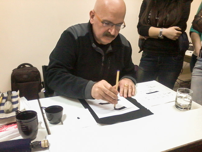 Դասընթացի սկզբում պարոն Քալայջյանը Ձեն փիլիսոփայական ուսմունքի վերաբերյալ որոշ տեղեկություններ հաղորդեց մասնակիցներին և նկարագրեց չինական վրձնարվեստի հիմնատարրերը: Վրձնարվեստը տարբերվում է արվեստի մյուս ձևերից, այն զգացողություններ է արթնացնում. ասես նկարիչն ուղղակի վրձնահարվածներ կամ լայն գծեր անելիս լինի` որևէ տառանշանի, կերպարի կամ տեսարանի տպավորություն ստեղծելու համար: Սակայն սա լոկ գեղեցիկ պատկեր ստանալու եղանակ չէ, այլ փիլիսոփայական ու զգայական ասելիքի պատկերում: Ի տարբերություն նկարչության, որը կարող է սպոնտան` ինքնաբուխ լինել, վրձնարվեստում ոչինչ պատահական չէ. նկարիչը պտտաձև շարժումներով սկսում է պատկերն էջի սկզբից ու աշխատելու ողջ ընթացքում կենտրոնացած է մնում տվյալ պահի և տրամադրության մեջ: