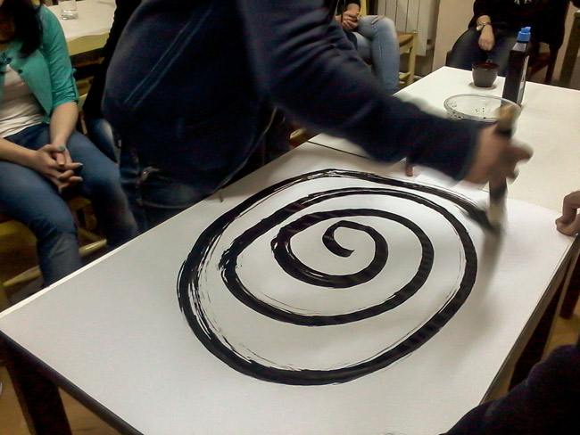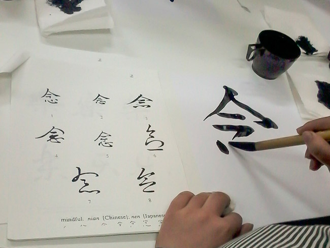 Տեսական նախաբանից հետո պարոն Քալայջյանն աղջիկներին բաժանեց անհրաժեշտ նյութերը և սկսեց ներկայացնել գործնականում թանաքանկարչության տեխնիկան, ոճը, ավանդույթները և մեթոդները: Աշխատաձևն ու մոտեցումը հասկանալով՝ աղջիկներն իրենք անցան գործի ու փորձեցին պատկերել «երջանկությունը», ինչպես նաև տվյալ պահի մեջ կենտրոնանալու ամենաբարդ պատկերումը՝ nyen-ը: Արվեստի այս ձևին տիրապետելը շատ դժվար է, քանի որ այն հատուկ ձիրք ու ճշգրտություն է պահանջում, ինչպես նաև տվյալ պահի մեջ կենտրոնացում: