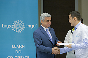 Միջոցառման ընթացքում նախագահը պարգևներ հանձնեց «Լույսի»՝ «Ստարտ Արմենիա» ձեռներեցության դրամաշնորհի մրցույթում հաղթած շրջանավարտներին, ովքեր ներկայացրել էին Հայաստանում սկսնակ ձեռնարկություն հիմնելու նախագծեր: Հաղթող ճանաչված Արթուր Ասլանյանը, Էլինա Մարկարյանը և Արթուր Խալաթյանն առիթ ունեցան ևս մեկ անգամ ներկայացնելու սկսնակ ձեռնարկության իրենց նախագծերը: